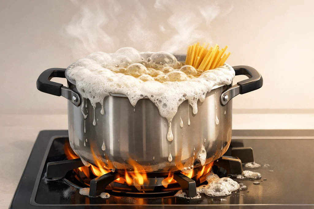Pourquoi les pâtes débordent-elles quand l’eau bout ?Quand on fait cuire des pâtes, il arrive que la casserole déborde soudainement, surtout si le feu est fort et le couvercle est posé. Ce phén...