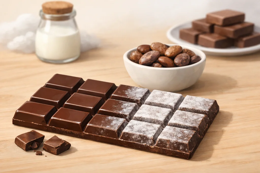 Pourquoi le chocolat blanchit-il parfois (et peut-on encore le manger) ?Il arrive qu’une tablette de chocolat prenne une couche blanche ou grise, comme une poussière ou des marbrures. Ce phénomène est fréquent ap...